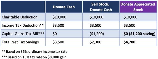 See how stock bought for $2,000 can result in a $15,000 gift with $4,700 in total net tax savings!